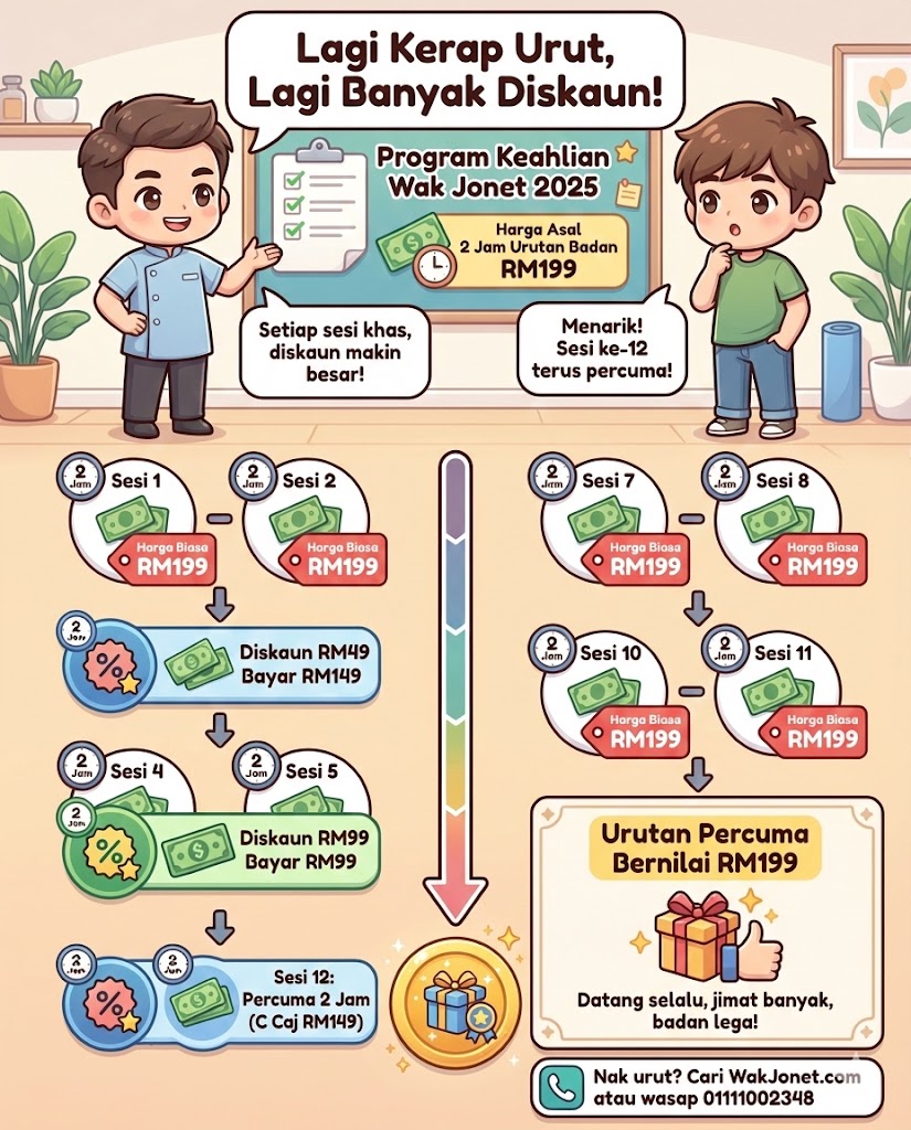 3 Cara Nak Dapatkan Urutan Badan Wak Jonet 2 Jam PERCUMA!