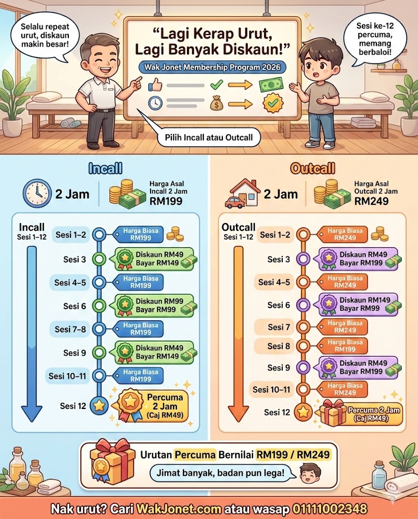 - Kongsikan servis urutan Wak Jonet di semua media social on the spot. Bahan iklan akan di berikan.