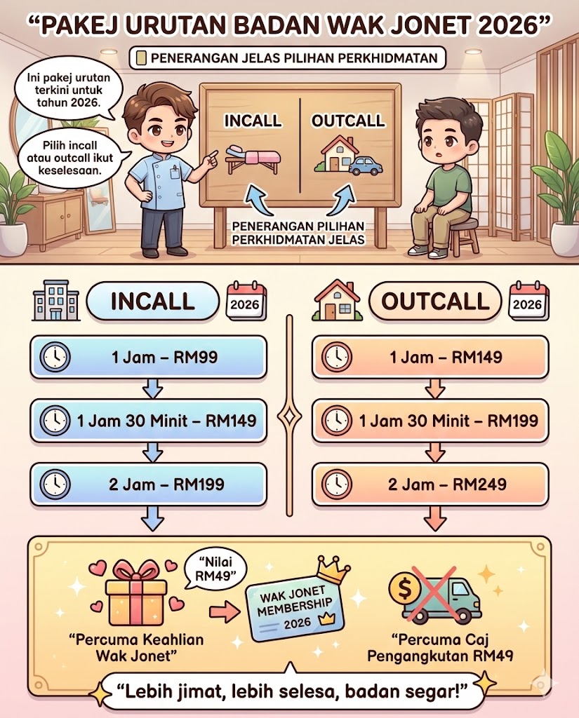 - Kongsikan servis urutan Wak Jonet di semua media social on the spot. Bahan iklan akan di berikan.